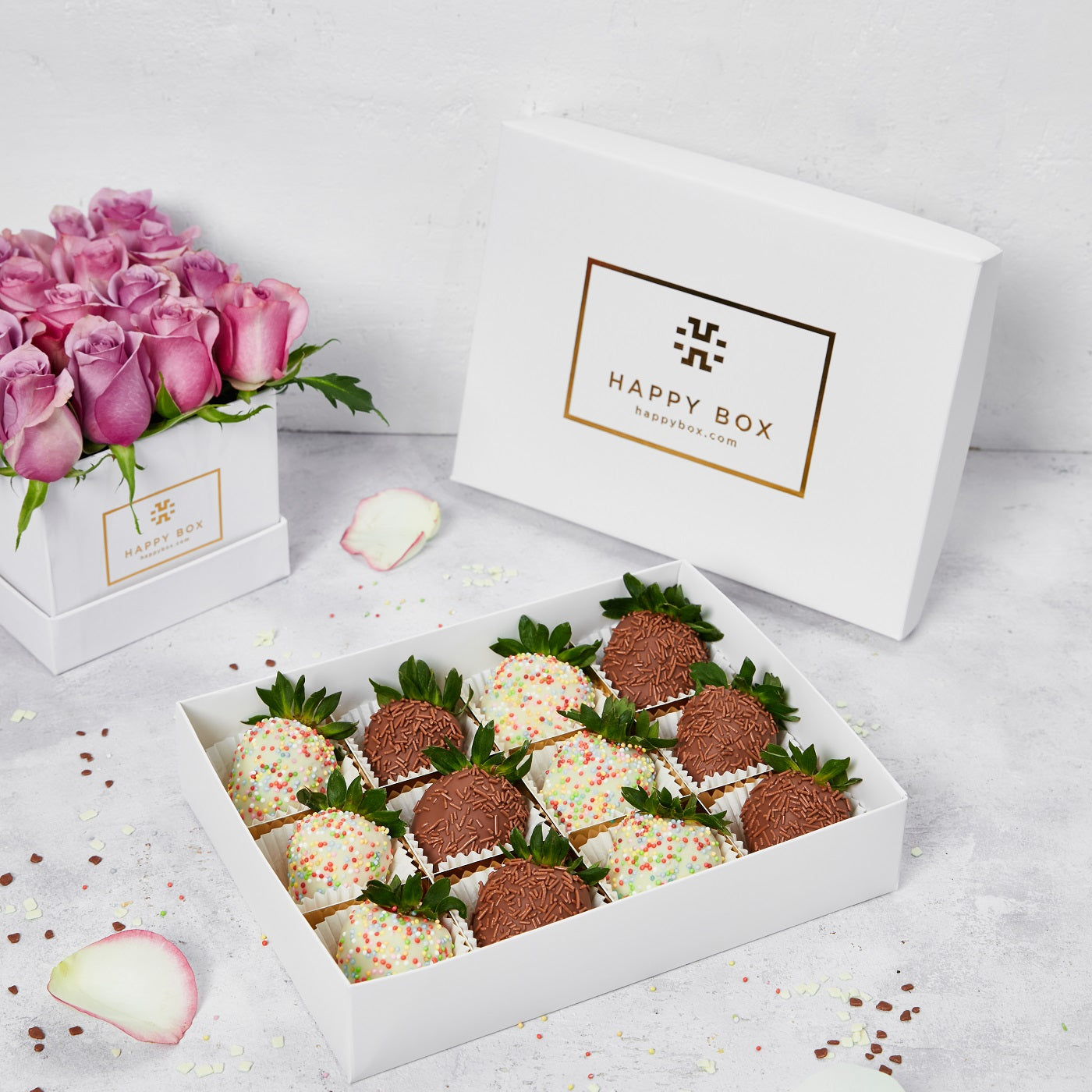 Blow out the candles… it's time to celebrate a birthday! Our fresh, juicy berries are dipped in Swiss white and milk chocolate, decorated with rainbow and chocolate sprinkles to make someone’s special day exceptional!
