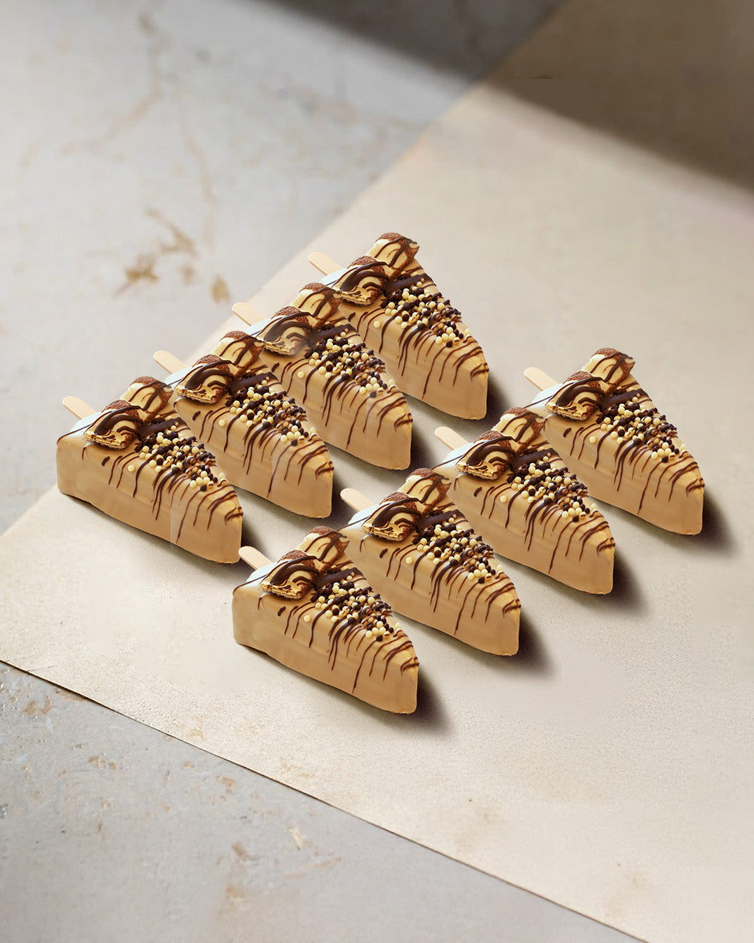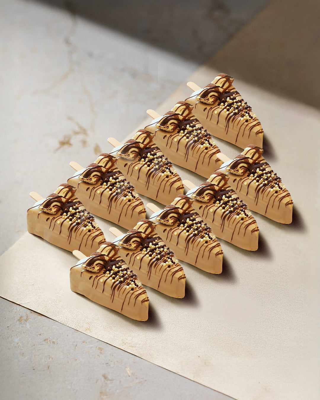 A classic New York-style cheesecake coated in creamy Kinder Bueno spread, topped with assorted chocolate balls and white Kinder Bueno pieces for a rich, indulgent finish. |